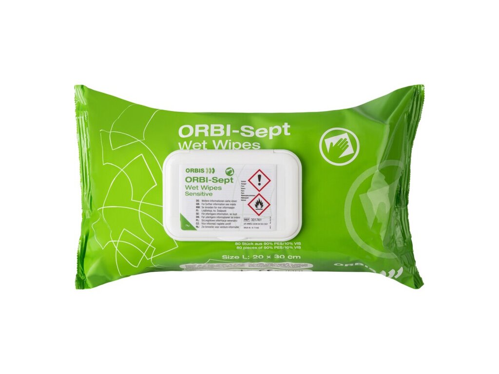 ORBI-Sept Wet Wipes Sensitive Flowpack 20x30 neutral 80ks velmi dobrá materiálová snášenlivost