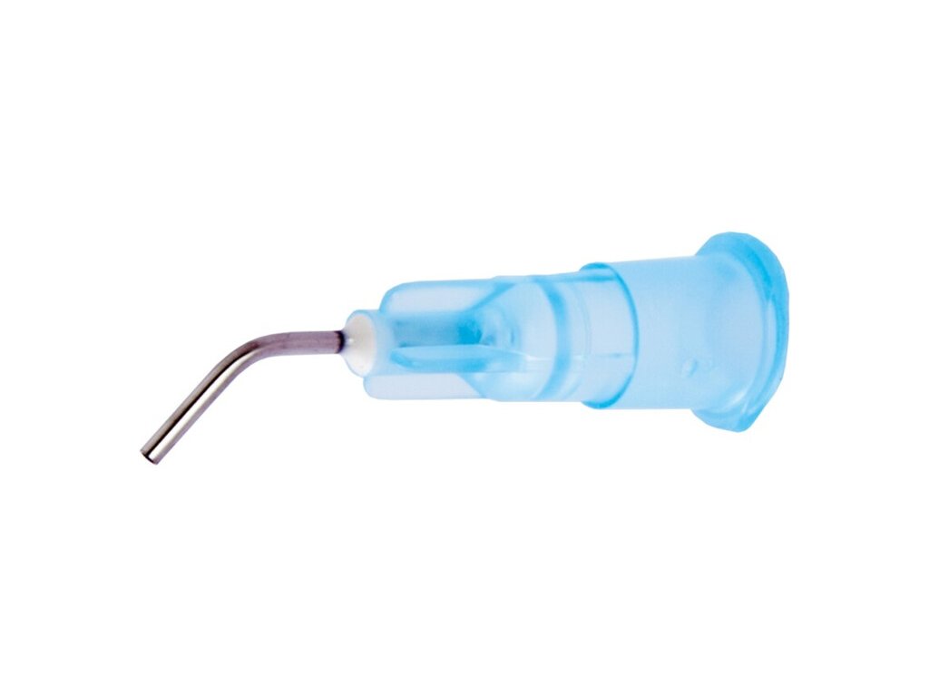 tuhnoucího materiálu. Ohnutá kovová jehla (30.° nebo 45.°) umožňuje optimální přístup do dutiny.